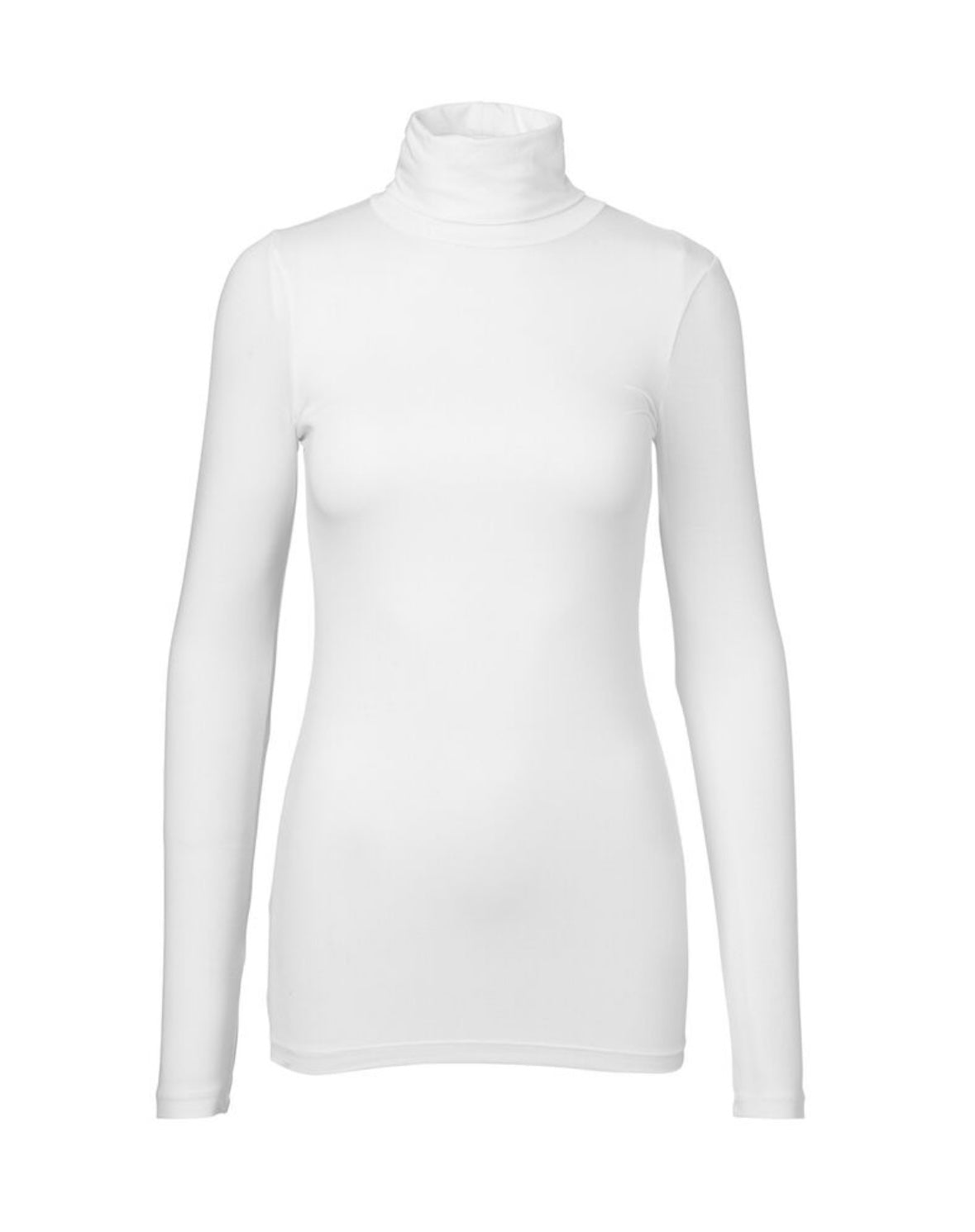 Evelyn rullekrave fra mbyM er en tidløs og elegant basic bluse til damer, der kombinerer komfort med et stilrent design. Den tætsiddende pasform og klassiske rullekrave gør den perfekt som både hverdagsbluse og som base under strik, blazer eller kjoler.