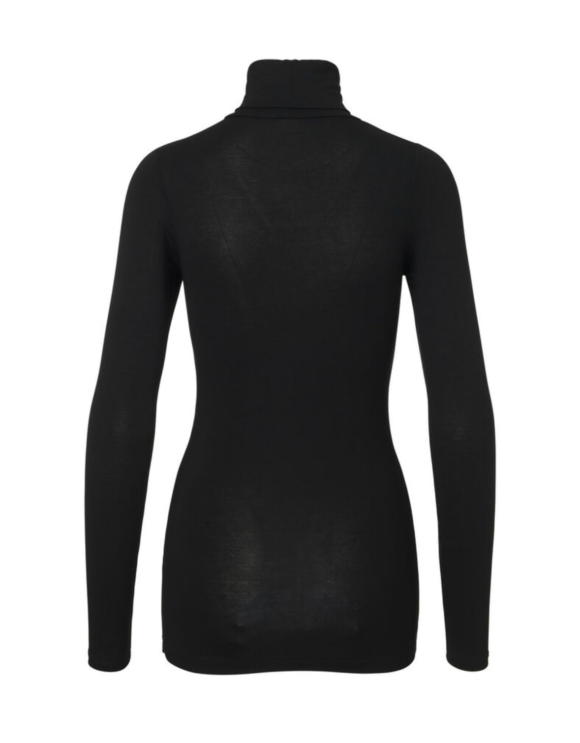 Evelyn rullekrave fra mbyM er en tidløs og elegant basic bluse til damer, der kombinerer komfort med et stilrent design. Den tætsiddende pasform og klassiske rullekrave gør den perfekt som både hverdagsbluse og som base under strik, blazer eller kjoler.