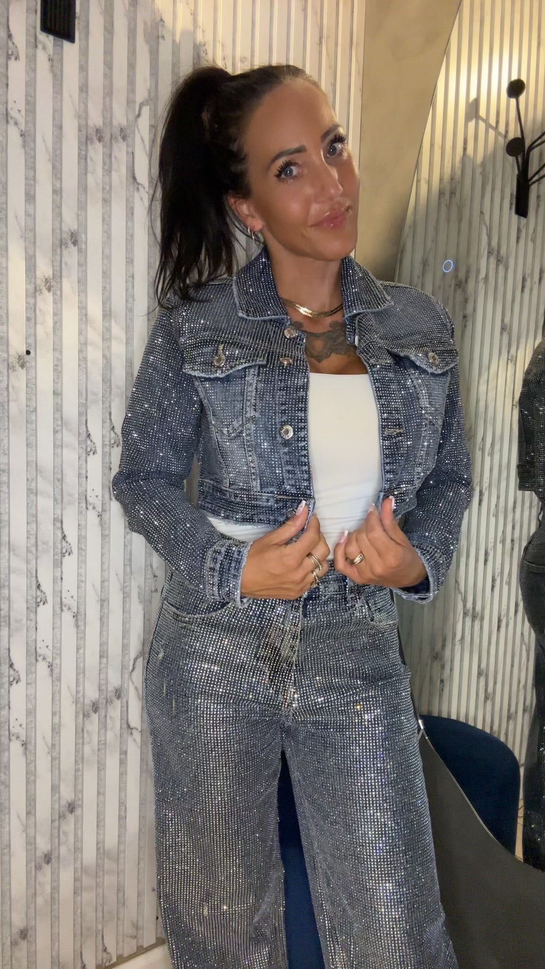 Denim jakke med glitter