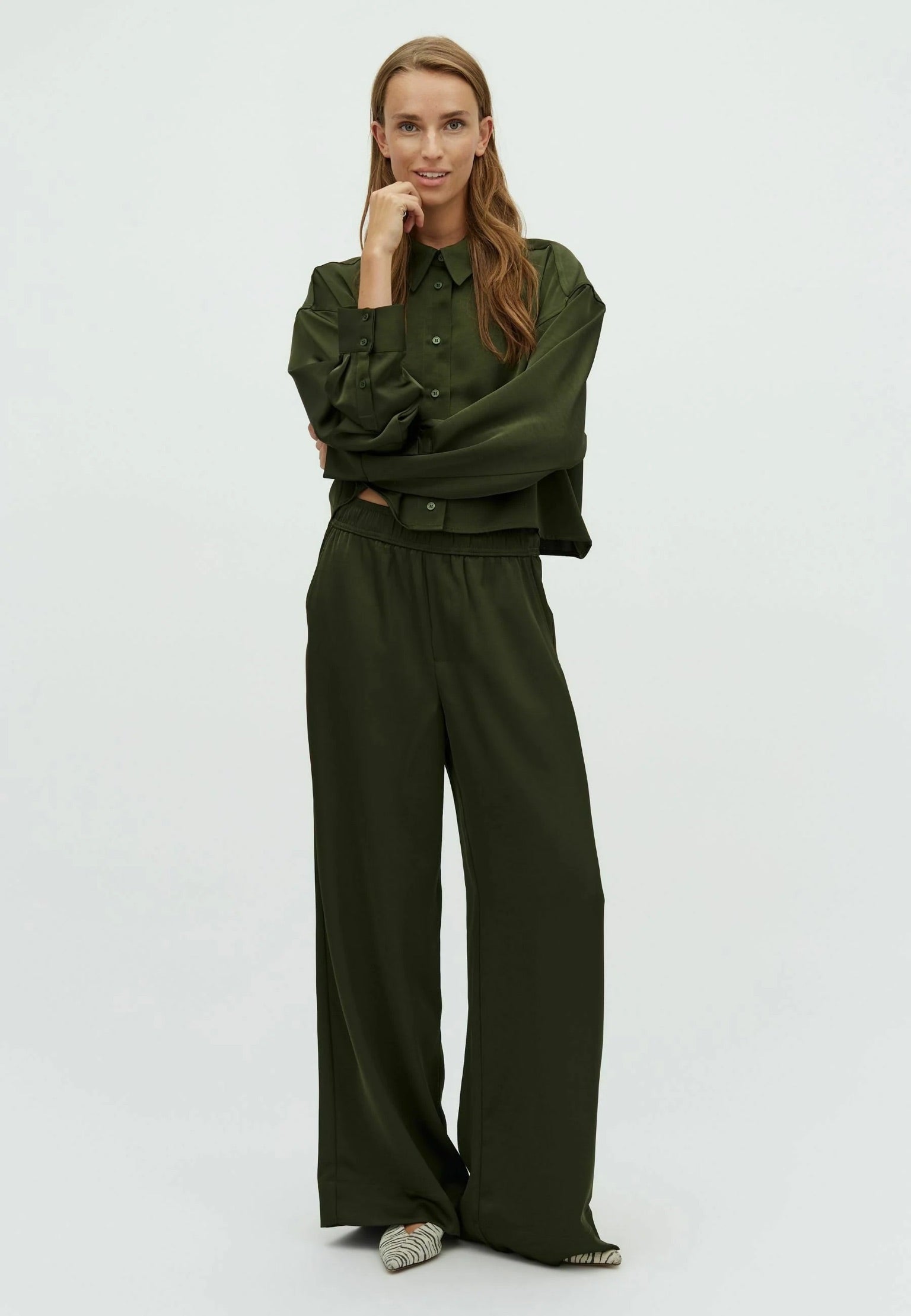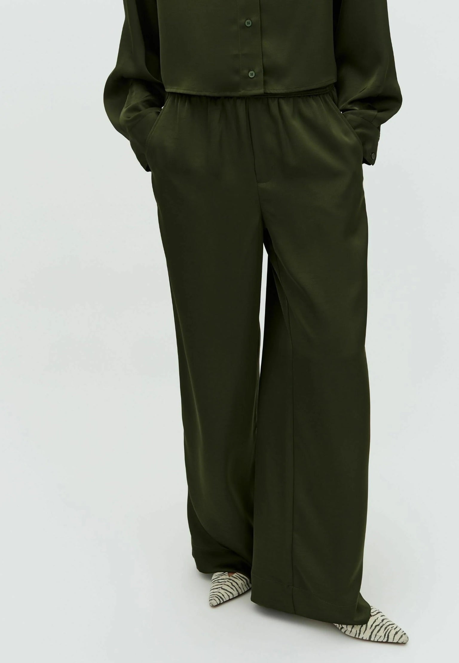Opgrader garderoben med disse smukke bukser. De er fremstillet i 98% polyester og 2% elastan, hvilket giver en fleksibel og behagelig pasform. Materialet har et blødt og skinnende finish, der tilfører et elegant og luksuriøst udtryk. Perfekte som festbukser eller til at skabe et stilfuldt hverdagslook – et must-have for dig, der elsker med shine og komfort.