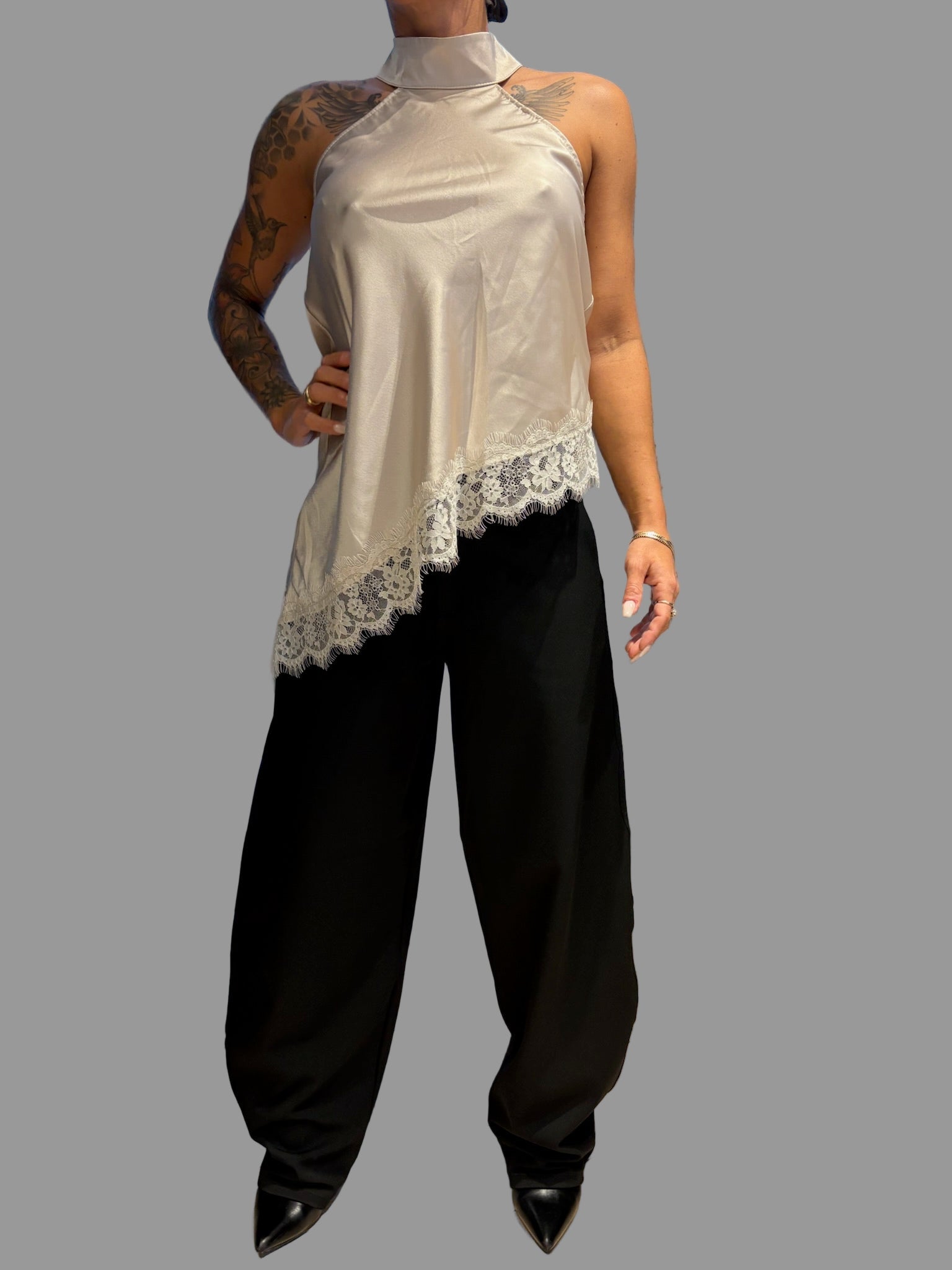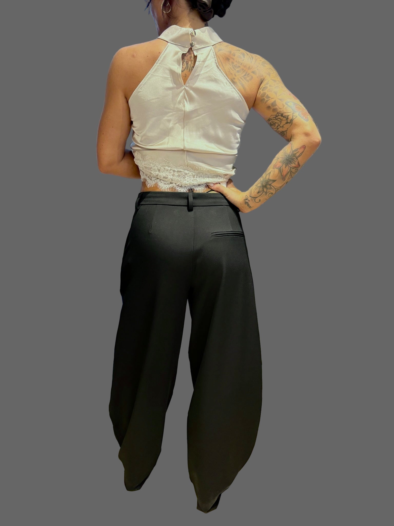 Materiale: 62% Recycled polyester, 33% viskose, 5% elastan. Mid-waist - Bæltestropper - Sidelommer - Skjult lynlås - 1 paspoleret baglomme