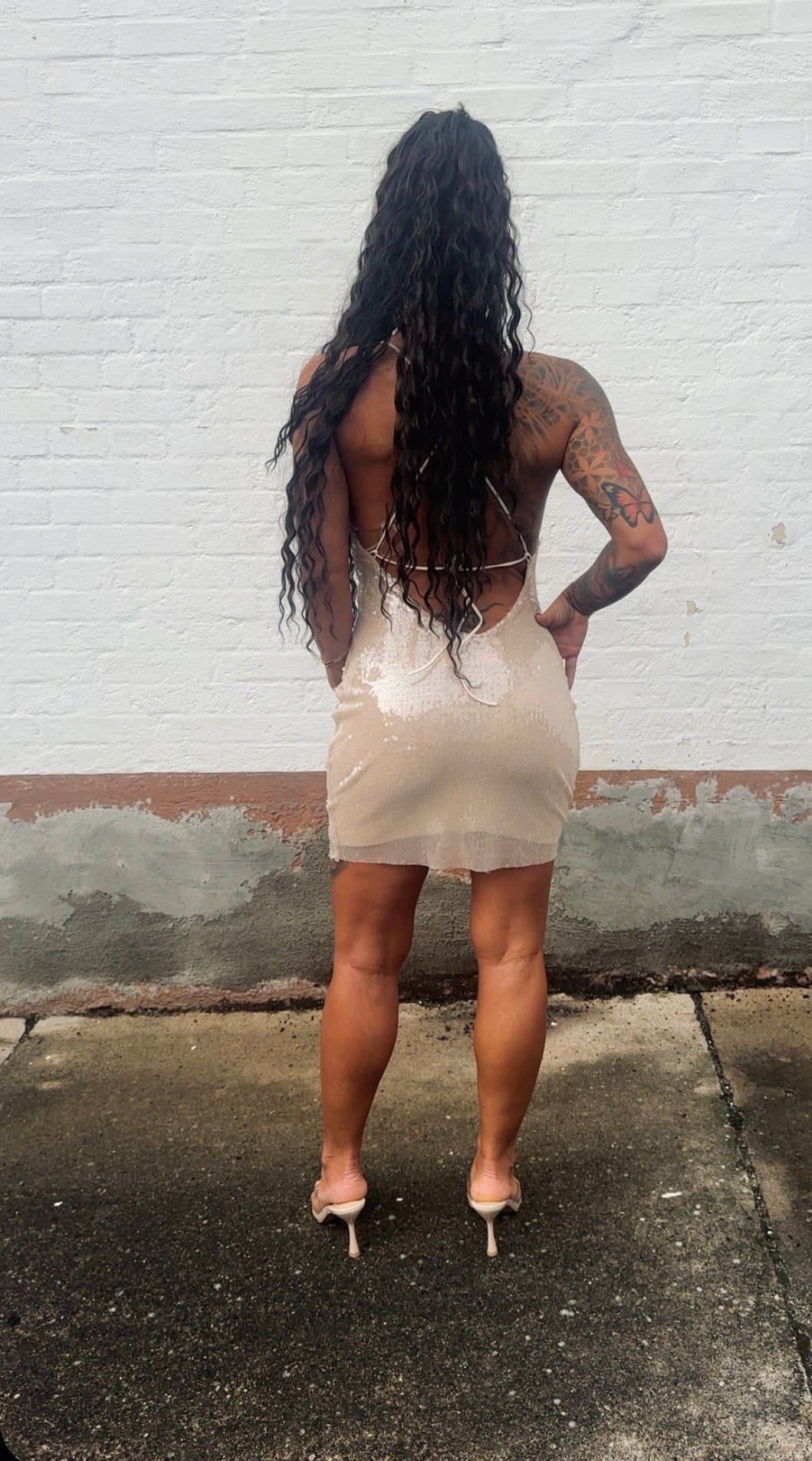 Denne fantastiske guld palliet kjole er det ultimative statement piece til festlige begivenheder. De smukke guldpallietterne fanger lyset og skaber en strålende, glamourøs effekt der garanteret gør dig til midtpunkt.