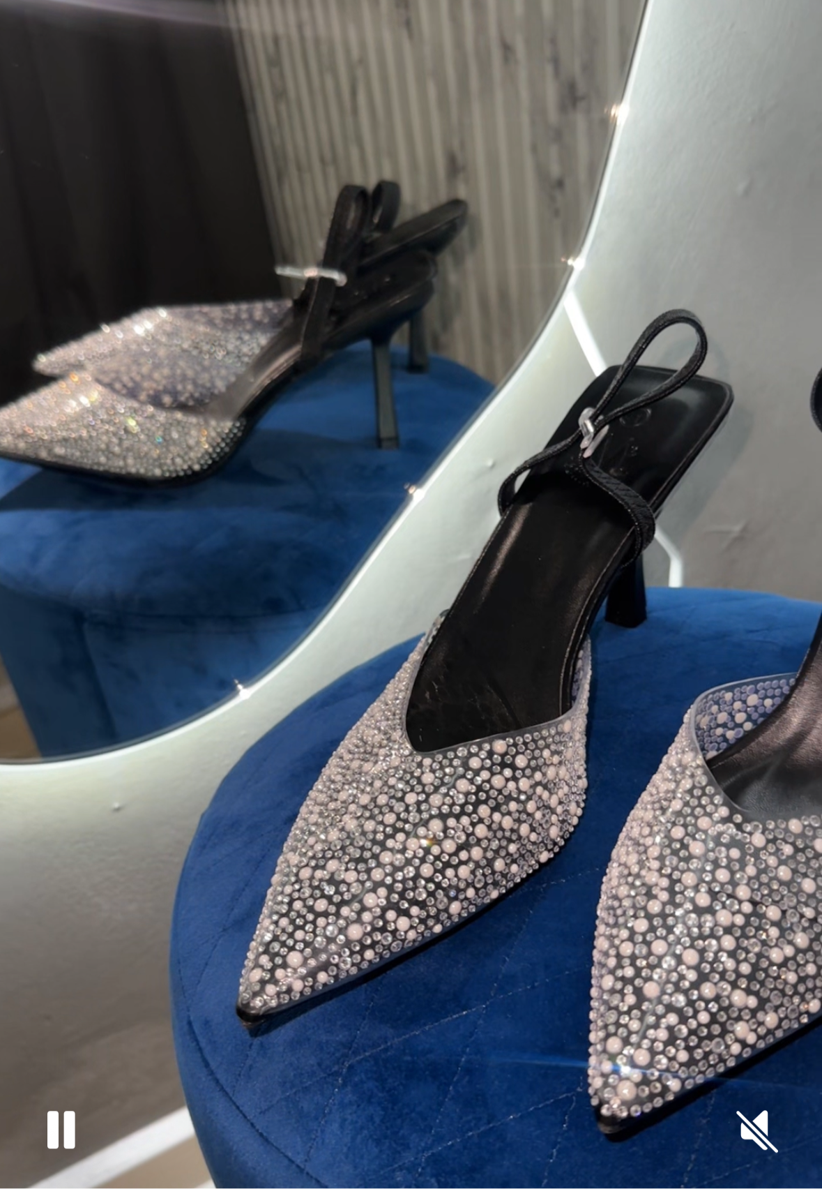 Disse smukke stiletter med slingback-rem og spids snude er dækket af funklende sten, der giver et glamourøst udtryk. Den slanke hæl gør skoene ideelle til bryllup, galla, nytår eller enhver festlig anledning.