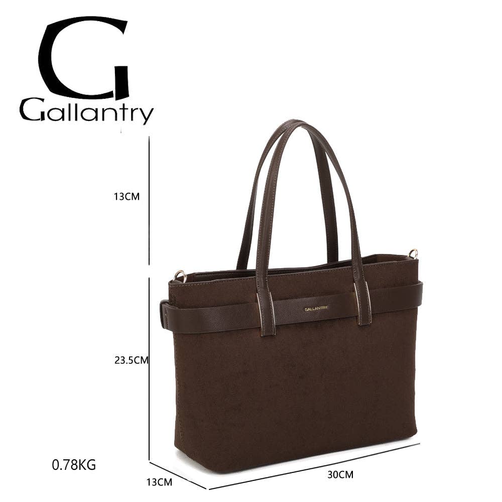 Tasken fra Gallantry er elegant og tidløs og forfører med sit chic og naturlige udseende. Taskens blanding af ruskindseffekt materiale og glatte imiteret læder finish giver den en raffineret stil, ideel både til hverdagsbrug og til mere formelle dage.